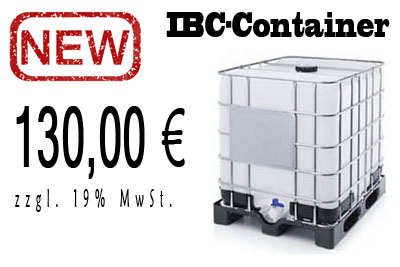 Der IBC-Container ist der optimale Lager- und Transportbehälter. Mit einem Fassungsvolumen von 1.000 Liter ist er der ideale Wassertank für größere Bedarfsmengen.